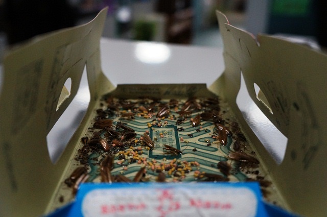 I spend my work days with a fine collection of roaches stuck in a sticky roach house – I have no pity.