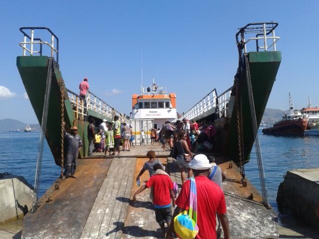 I thought I would paint a picture first about getting there. The rugby league fields are in Bisini, and if you don’t have a vehicle pass, then it is a loooong wait outside trying to get in. Jono rang me seeing if we had a vehicle pass as they were camped out with no way of getting in the gates – the official crowd number according to the paper was 10,000 – but the ground apparently holds 20,000 and there was at least that and maybe 10,000 more…. Lots of people couldn’t even get into the ground… So we picked up Jono and Jamin and they got the easy ride through the gates with us 🙂 The crowd outside the gates was amazing, and very intimidating for a first timer…