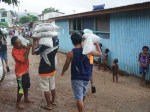 This part of bride price is the act of giving back to the families who gave to Billy’s bride price, the Motuan’s have a ledger that records the gifts, and it is the man’s responsibility to ensure he gives back in kind when that family’s son is doing his bride price.  I’m sure that there is much more to it than that – but that is what I gathered… The pole has traditional shell money, as well as K2 and K5 and lots of decoration, the girls carry the large denomination money – and recent bride prices have had over K100,000 gifted. A lot of money! Xaria was filmed by the local TV station EMTV whilst leaving the groom’s house – it really struck me how big the Bride Price ceremony is.